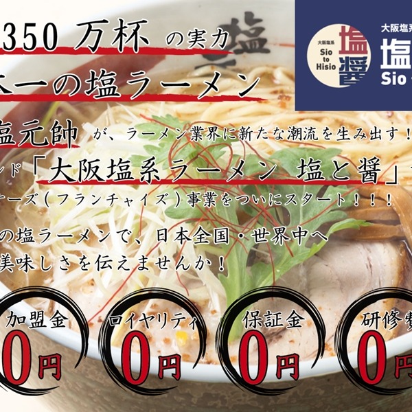【フランチャイズ募集】大繁盛ラーメン店「塩元帥」新規事業としてフランチャイズ...